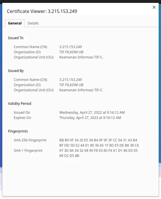 Berikut informasi general dari SSL Certificatenya.