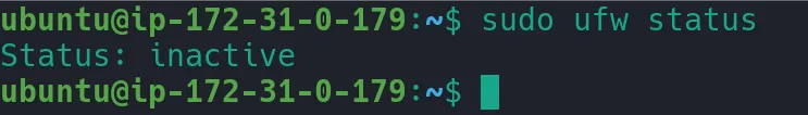 Selanjutnya kita harus memastikan bahwa aplikasi “Apache Full” ada di dalam aplikasi yang diberpolehkan di firewall. Untuk mengatur firewall di Linux dapat digunakan perintah ufw. Di AWS Educate yang saya gunakan firewall ufw tidak diaktifkan sehingga bisa saya lewati saja.